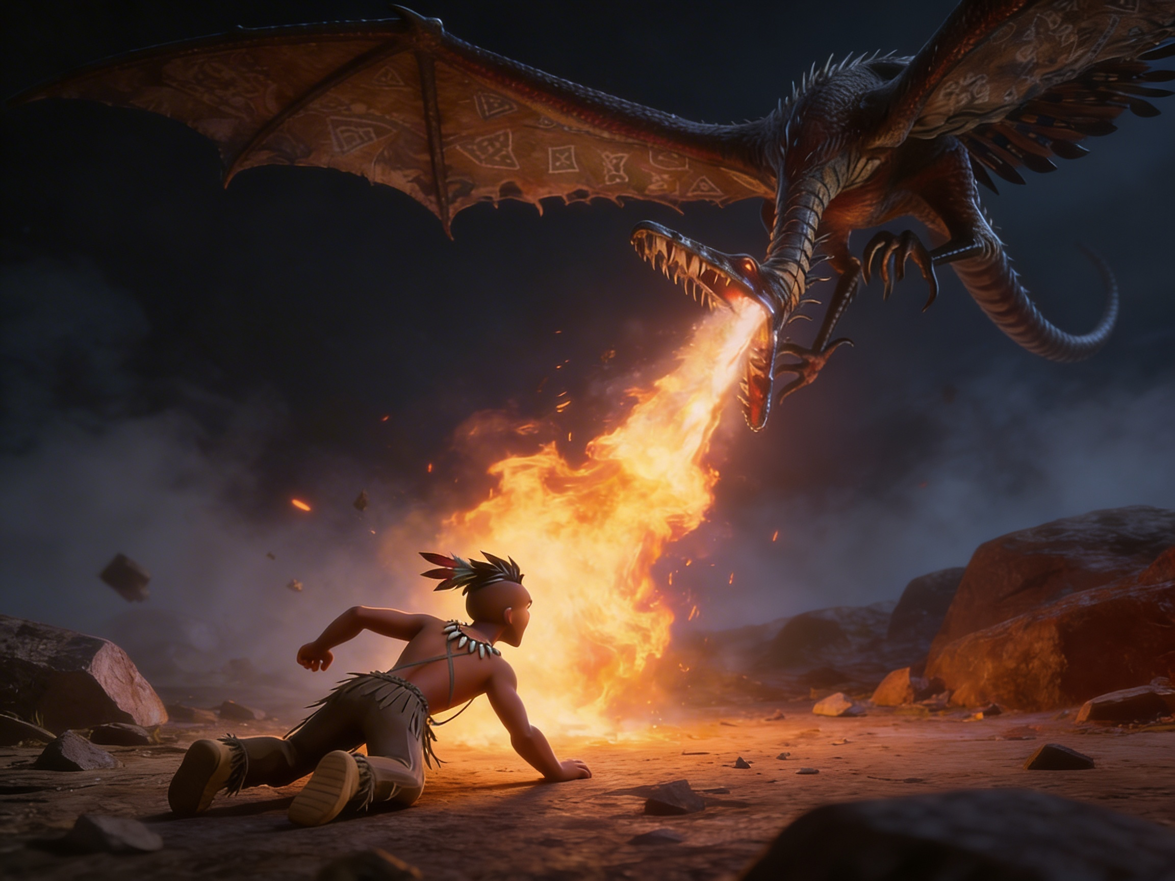 A fiery and terrifying legendary creature that Chaska must battle past in the depths of the Spirit World.
